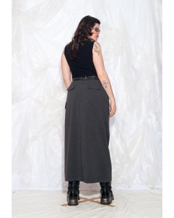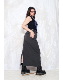 This simple, minimalist tube skirt features a dark charcoal hue. Its long, straight lines are sleek and stylish, while the flowing drape makes it perfect for day or night. Wear it with a T-shirt and sneakers, or a crisp shirt and boots for a sophisticated and casual look.