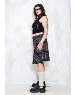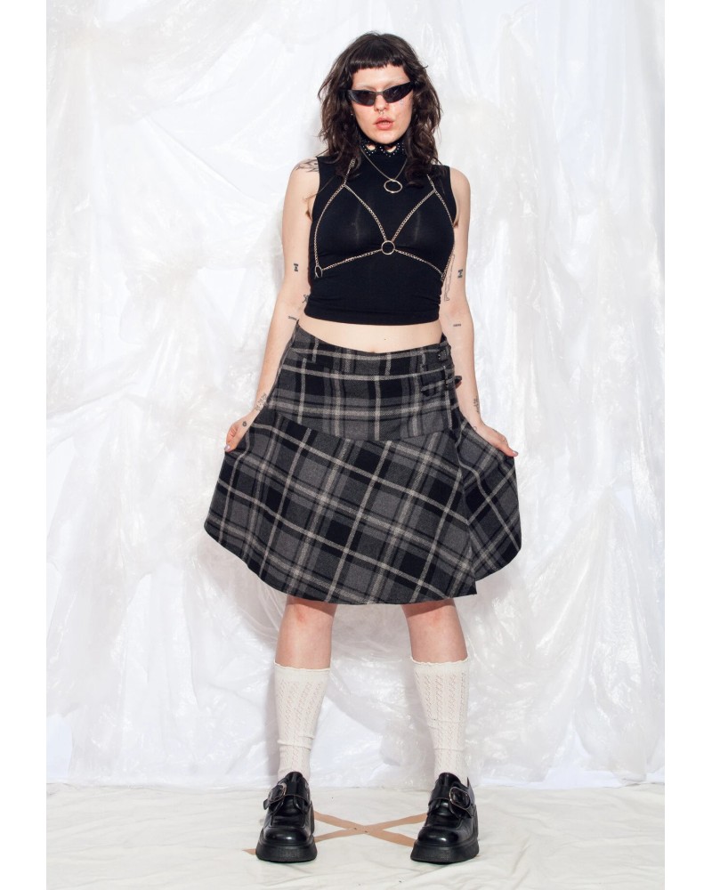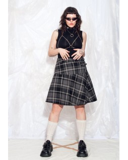 A modern take on classic plaid. This A-line skirt features off-shoulder design, defined waist, and flared silhouette—perfect for both smart casual and everyday wear.
