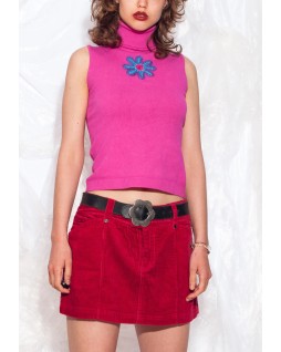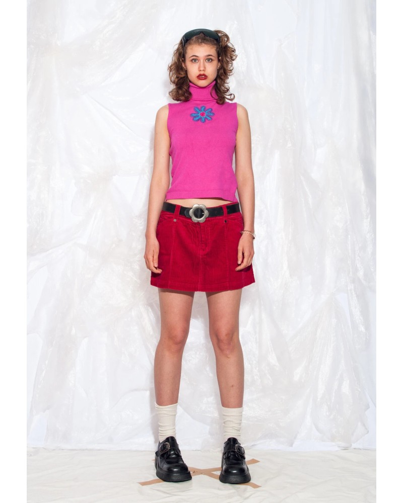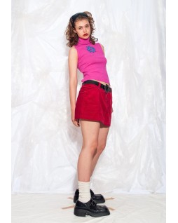 This bold cherry red mini skirt, crafted from soft corduroy, exudes confidence and is easy to style. Wear it casually with a T-shirt and sneakers, or dress it up with a cropped sweater and boots for a more stylish look.