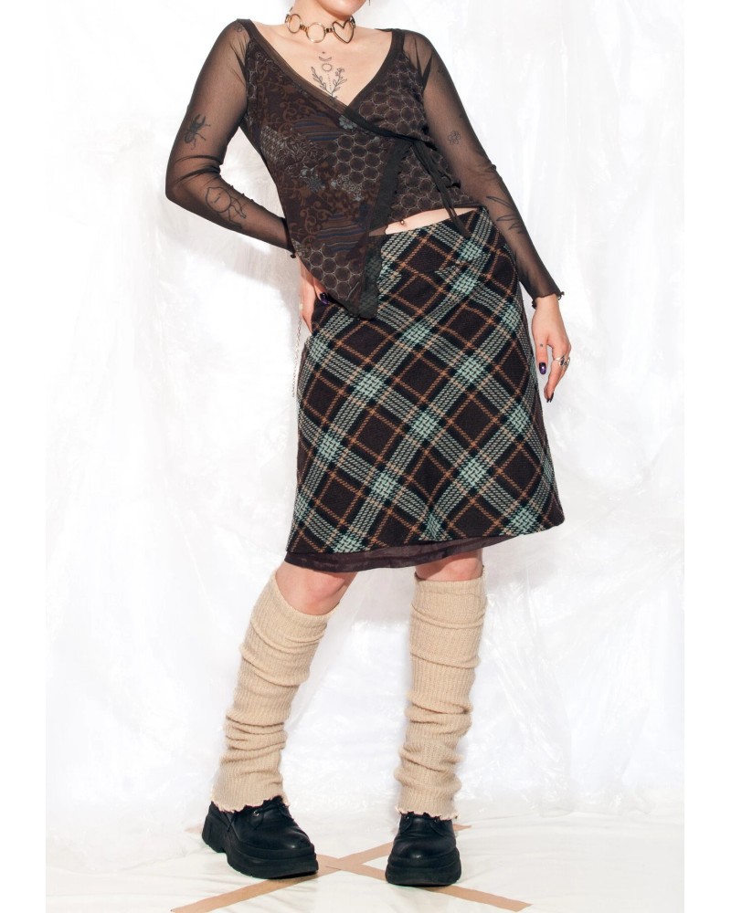Highlight the plaid with a solid or tonal top; tuck it in or crop it to show off your waistline.