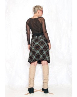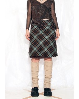 Classic plaid with a modern twist. This A-line skirt features a diagonal check pattern for a slimming effect, while a dark contrast hem adds a tailored feel—easy to wear for both formal and casual occasions.